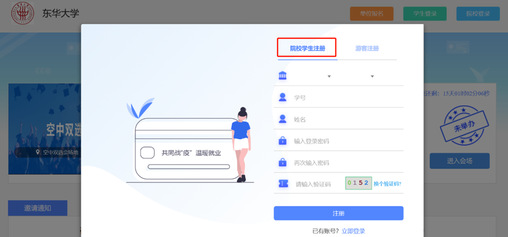 (2)点击右下角登录,使用手机号或微信一键登录,点击右上角切换院校身份,选择院校(东华大学或武汉纺织大学),输入学号、姓名与密码,登录。