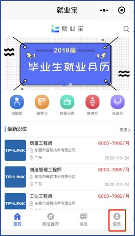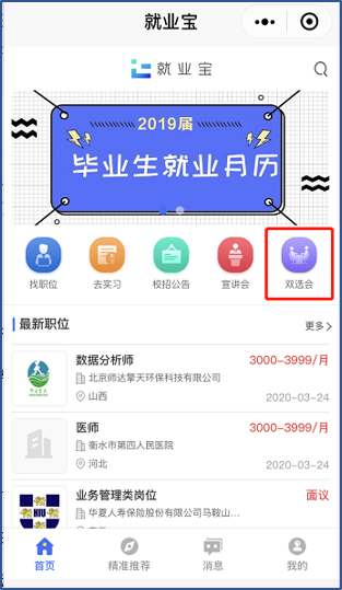 (1)微信关注公众号【就业宝】-选择校园招聘。