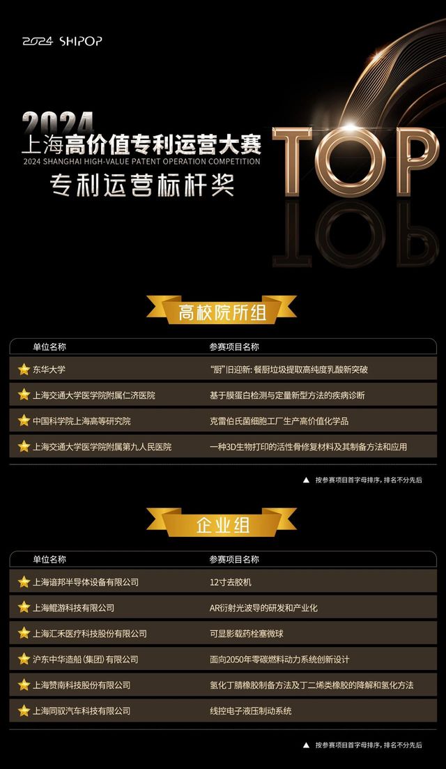2024年12月17日,由上海市知识产权局、上海市科学技术委员会、上海市教育委员会指导,上海技术交易所、上海市高校科技发展中心、上海市知识产权服务中心联合主办的上海市高价值专利大赛(简称“上高赛”)及颁奖典礼顺利举行。我校环境学院李响团队的““厨”旧迎新:餐厨垃圾提取高纯度乳酸新突破”项目荣获“上海市高价值专利运营大赛标杆奖”。计算机科学与技术学院李玮团队的“基于密码安全检测实现新技术新业态安全发展的新型软件设计”项目入围百强。我校科研院荣获“专利运营服务奖”。