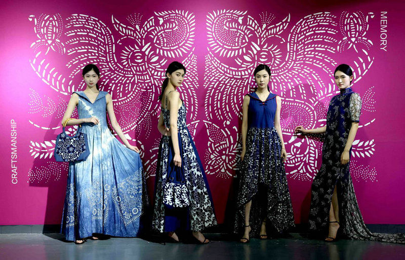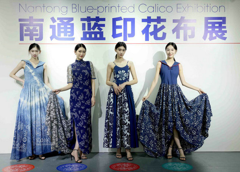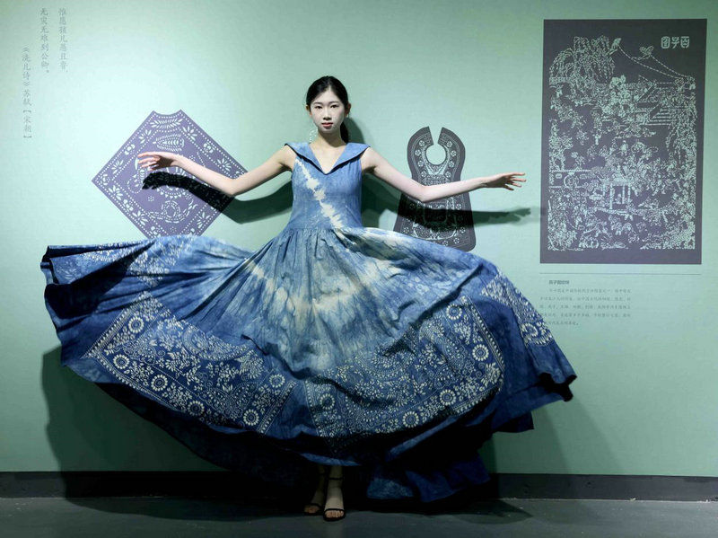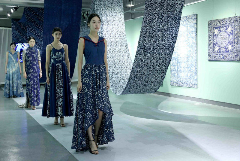 12月13日,模特在展示蓝印花布时装。