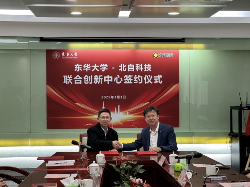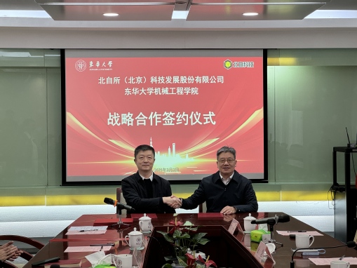 3月3日,东华大学机械学院与北自所(北京)科技发展股份有限公司(以下简称“北自科技”)战略合作签约仪式在松江校区举行。副校长陈革、北自科技董事长王振林、总经理王勇出席。机械工程学院院长单鸿波、科研院产学研合作处处长刘亚男,团队负责人冯培等相关负责人与会,会议由冯培主持。