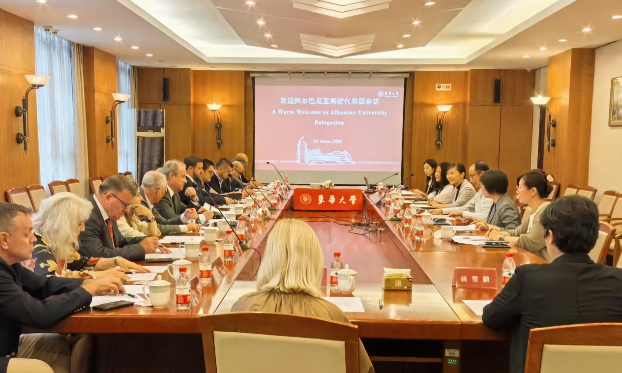 地拉那大学(Universiteti i Tiranës)校长Artan Hoxha(阿丹·霍查)和地拉那理工大学(Universiteti Politeknik i Tiranës)校长Akli Fundo(阿克力·方杜)分别介绍了学校学生人数、专业设置以及国际合作等情况,并表示双方高校与东华大学在许多专业领域有共同点,希望与东华大学签署谅解备忘录,在工程领域开展合作。