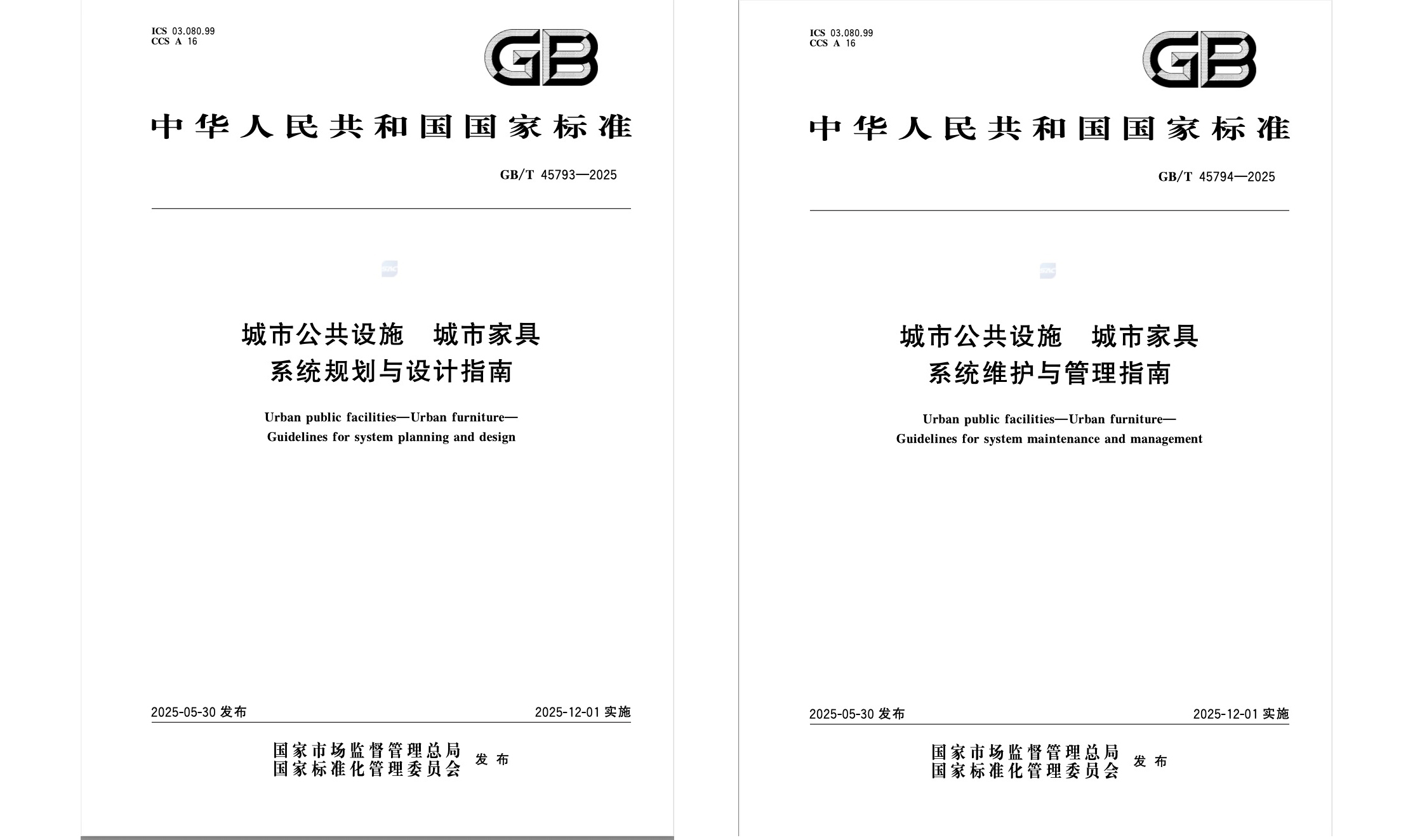 两部城市家具国家标准发布,是继2023年第7号中华人民共和国国家标准公告发布实施的四部重点国家标准《城市公共设施城市家具 术语》《城市公共设施 城市家具 分类》《城市公共设施 城市家具 系统建设指南》《城市公共设施服务 城市家具 系统建设实施评价规范》的城市家具系统体系的补充。六部城市家具国家标准的发布,标志着我国城市家具标准化体系从基础术语、分类、建设到规划设计、维护管理的全链条覆盖,填补了系统规划与设计、维护与管理领域的标准空白,共同构成城市家具“基础-技术-管理”系统性的系列国家标准,这在国际城市家具标准体系上是首次的。