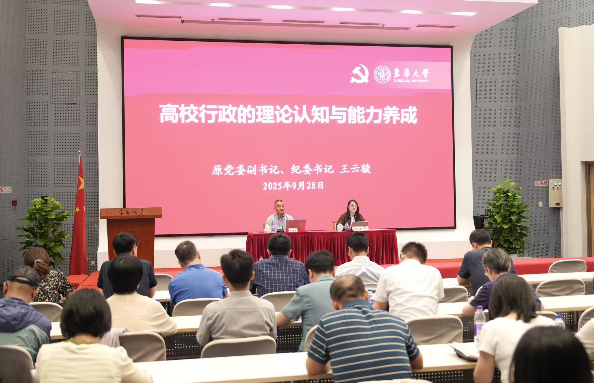 9月28日,学校在松江校区举办“干部管理能力提升”专题培训,邀请学校原党委副书记、纪委书记王云骏作“高校行政的理论认知与能力养成”专题辅导报告,机关全体处级干部、第十八期青干班学员、机关文明示范岗培训班学员等80余人参加培训,报告由党委副书记王治东主持。