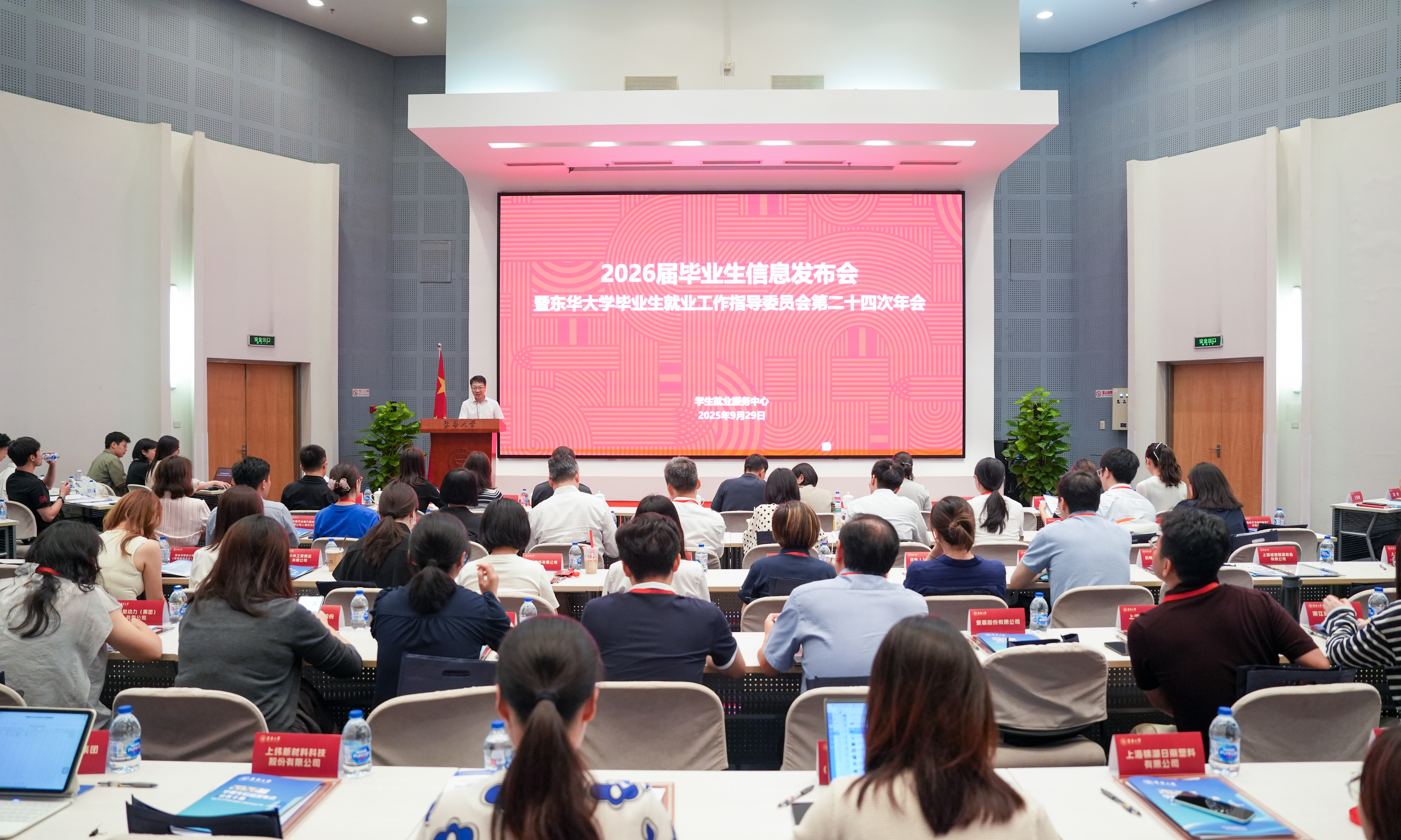 9月29日,东华大学2026届毕业生信息发布会暨东华大学毕业生就业工作指导委员会第二十四次年会在松江校区召开。校长项延训、党委副书记李成龙出席,来自全国各地近百家知名企业代表,各学院和相关部处负责人参会。会议由李成龙主持。