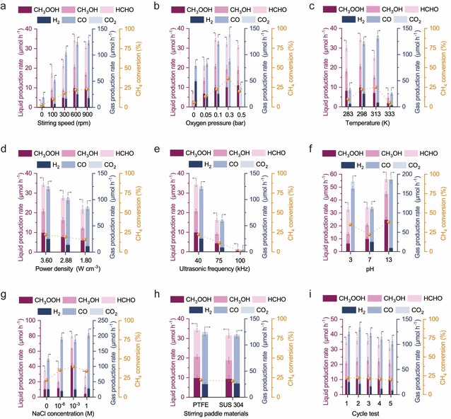 总之,与传统高温催化、能耗高的甲烷转化不同,该研究把机械搅拌与低频超声空化巧妙叠加,在常温常压、无催化剂的条件下,把甲烷部分氧化成甲醇、甲醛等C1化学品,为甲烷的高附加值转化提供了可持续途径。项目由国家自然科学基金资助(No. 52032001, 51972325, 52172256, 52372248)。