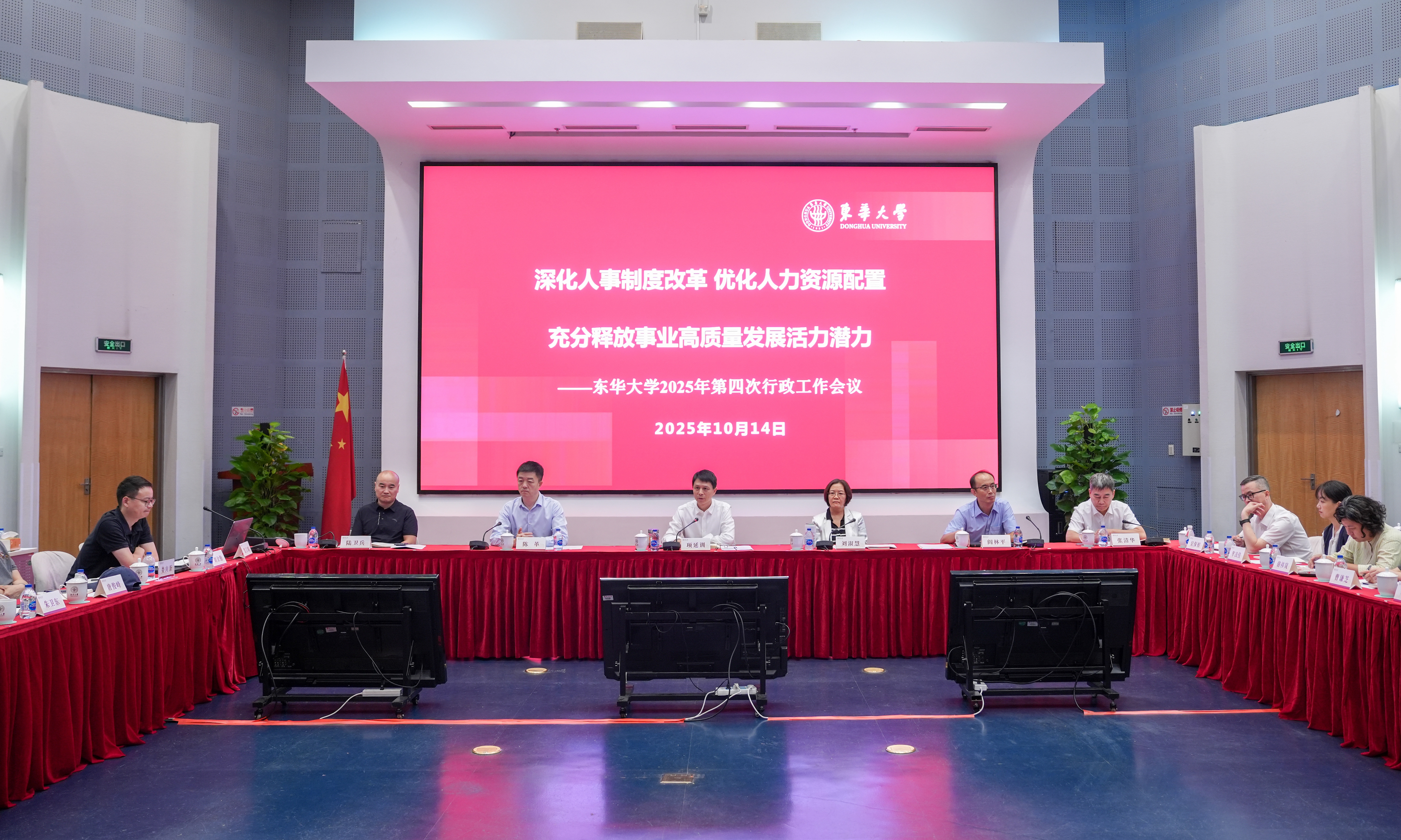 10月14日下午,2025年第四次行政工作会议在松江校区召开,会议以“深化人事制度改革 优化人力资源配置充分释放事业高质量发展活力潜力”为主题。校长项延训主持会议并讲话,副校长刘淑慧、陈革、阎林平、陆卫兵、张清华出席会议。各学院、相关行政职能部处、直属单位主要负责人参加会议。