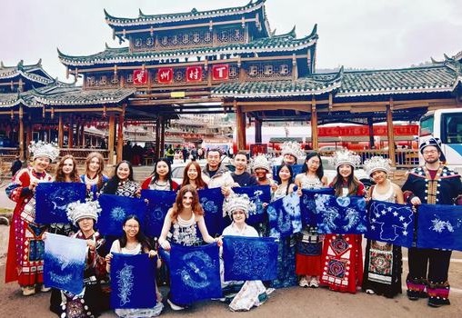 项目旨在培养中美大学生跨文化理解力、设计思维与非遗传承创新能力,助力非遗活态传承与国际传播。在贵州省驻沪办支持下,项目首次规划贵州非遗文化线路,以布依族、苗族、水族、侗族等少数民族非遗文化为主线,先后赴贵州省黔西南布依族苗族自治州贞丰县、三都水族自治县,黔东南苗族侗族自治州雷山县、黔南布依族苗族自治州荔波县以及黔东南苗族侗族自治州凯里市开展非遗研学活动。