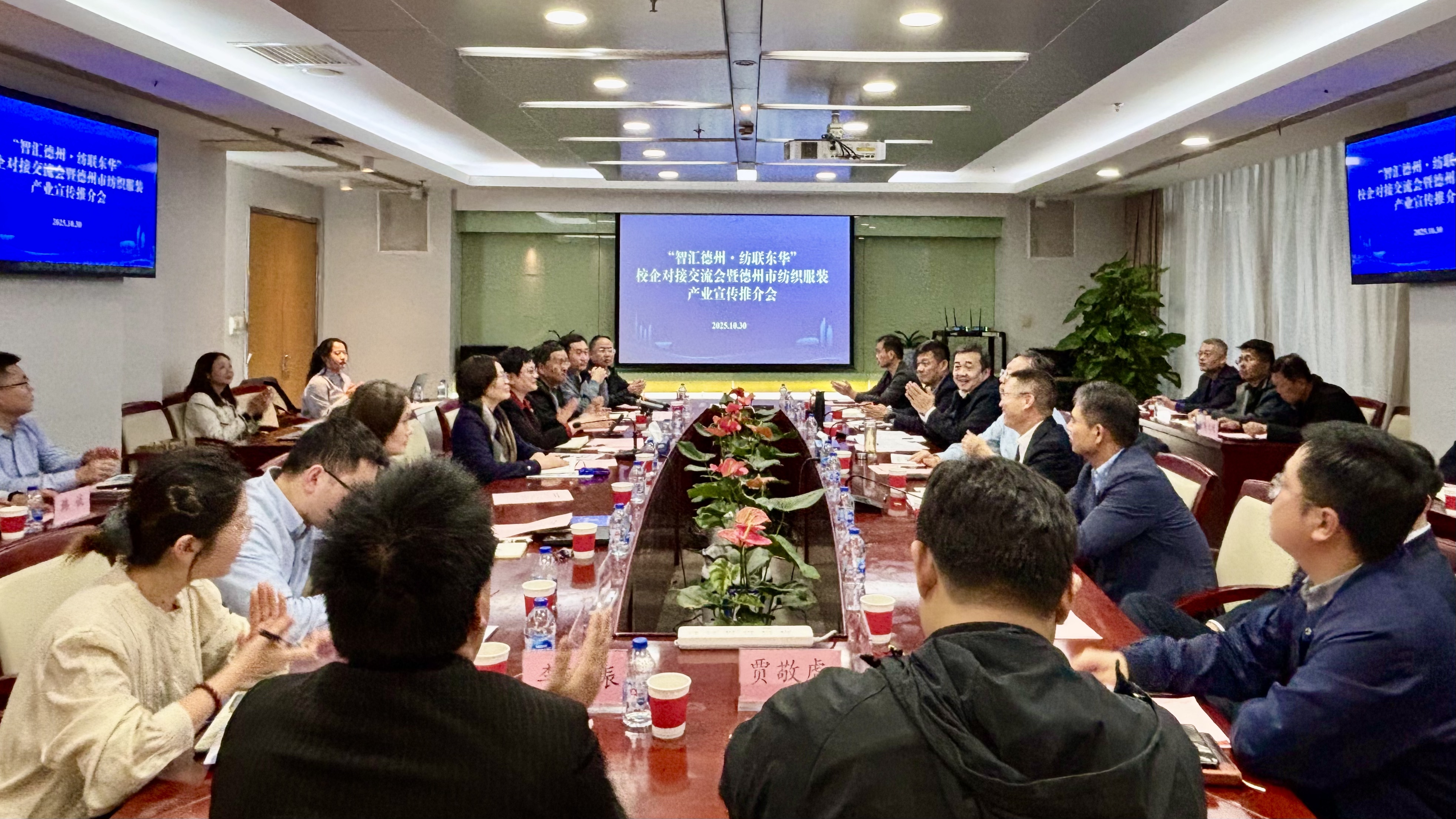 会上,德州市有关负责人介绍了德州市基本情况、纺织服装产业情况及人才政策。参会教师代表就绿色转型与低碳技术创新、无机非金属纤维材料研发、功能性纺织品开发等相关领域做成果介绍,就人才联合培养探讨合作机制。