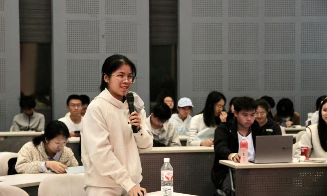 互动环节中,同学们就机械结构建模、纺织与计算机交叉应用、材料纤维生产制造等积极提问交流,孙以泽院士逐一细致解答。机械工程学院工业设计专业学生洪博涵说到:“三维编织技术实现碳纤维复合材料自动化、智能化生产,为各类军用飞行器、民用大飞机等高端装备构筑起坚韧‘肌理’,这些藏在纤维复材制造里的创新,让我倍感自豪。”信息与智能科学学院王鸿健同学谈到:“作为一名自动化专业学生,这堂课激励我努力提升自身能力,以更开阔的视野关注行业发展,以专业知识为‘新质纺织’贡献力量”。