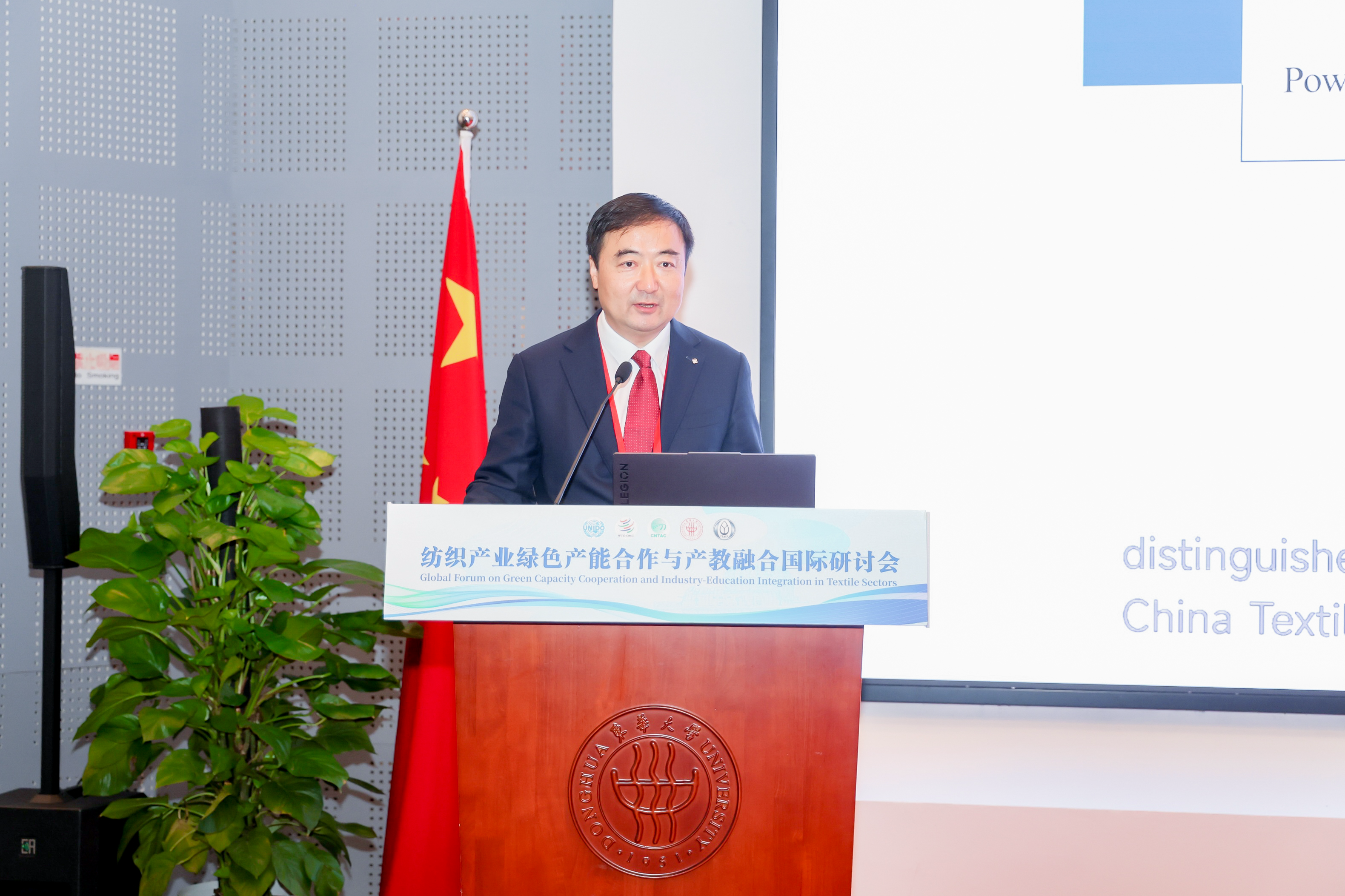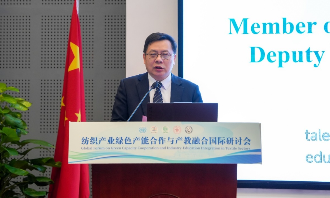 项延训向与会的国内外嘉宾表示热烈欢迎,并对联合国工业发展组织、世界贸易组织等机构及兄弟院校和企业单位的支持表达感谢。他指出,深化绿色产能合作、加强产教融合,是纺织行业迈向低碳、创新驱动与包容性未来的关键路径,也是落实联合国可持续发展目标的生动实践。东华大学发挥特色优势,努力开展高质量科学研究和成果转化,在绿色低碳、智能纺织等领域取得了一系列成果;积极开展高水平国际交流合作,构建了互学互鉴、共享共赢的新格局。期待与各方加强在绿色纺织科技、行业标准共建和高端人才培养等领域的国际合作,共同构建开放、包容、协同的全球纺织教育生态,为行业转型升级和可持续发展作出更大贡献。