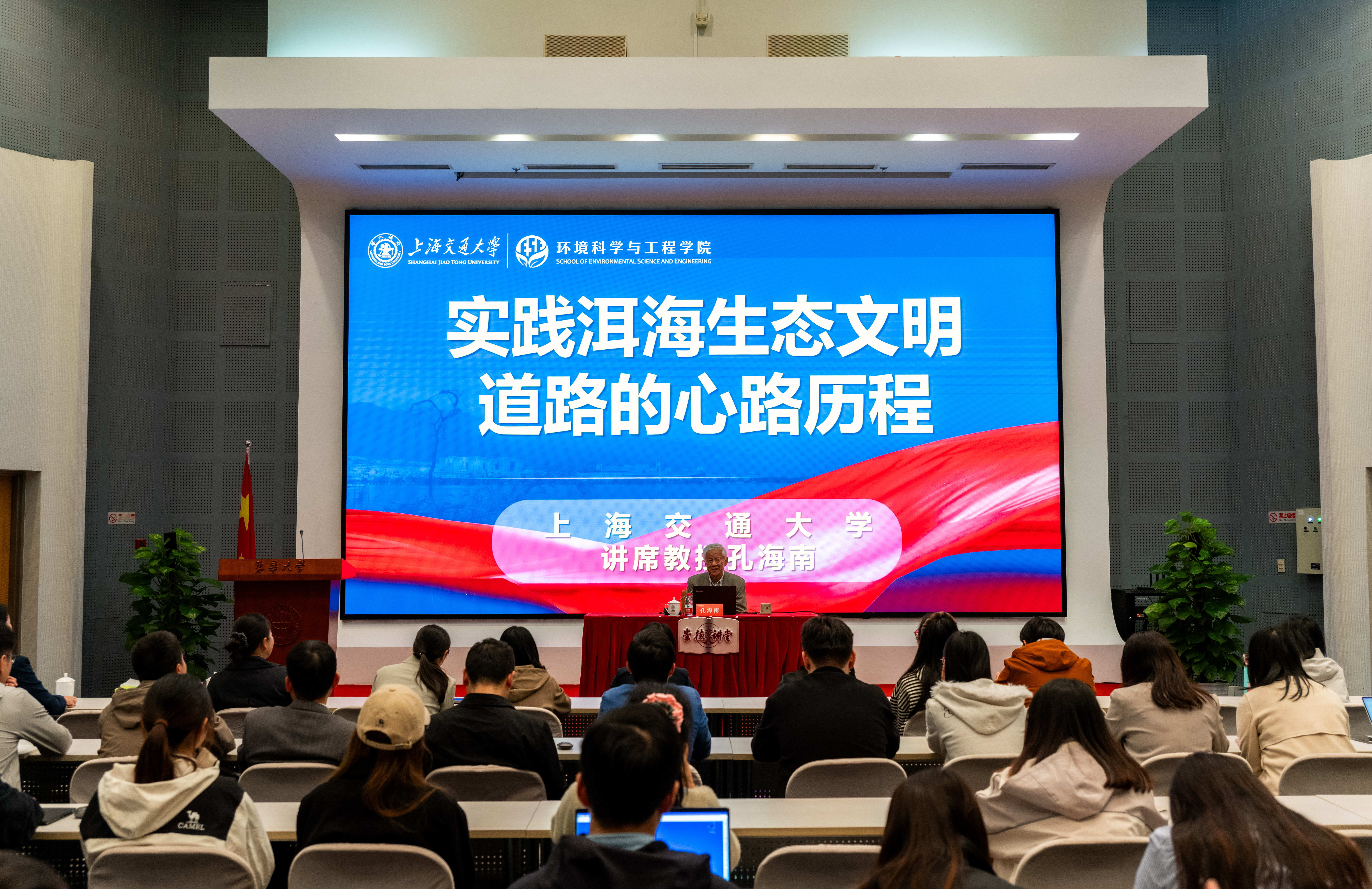 为贯彻落实习近平总书记关于“实施教育家精神铸魂强师行动”的重要指示,引导广大教师深刻领悟习近平总书记给全国特岗教师代表的重要回信精神,11月11日,学校教师思政品牌活动“崇德讲堂”专场讲座在松江校区举行。上海交通大学环境科学与工程学院讲席教授、国家水体污染控制与治理科技重大专项洱海项目首席科学家、首批“全国高校黄大年式教师团队”负责人孔海南应邀担任主讲嘉宾。