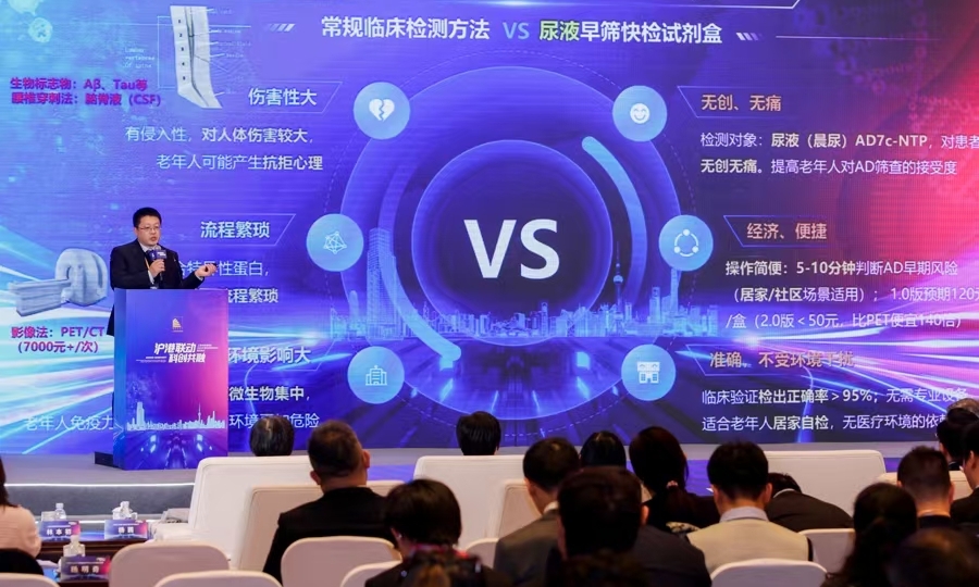张云龙团队获奖项目直击阿尔兹海默症(AD)早筛的全球性难题:AD是年龄相关性极强的神经退行性疾病,随着社会老龄化的加速,AD发病率激增,全球每3秒新增1例AD患者。现阶段临床诊断主要以有创(如腰椎穿刺)、依赖专业设备等手段,导致老年群体“不愿查、查不起”。本项目以“无创、准确、便捷”三大核心亮点破局:一是创新检测方式,选取尿液中神经丝蛋白AD7c-NTP作为标志物,仅需1滴晨尿即可完成“无创”检测;二是准确性升级,架构“Aβ、AD7c-NTP、GFAP”三联检卡,大大提升检测准确性(检出正确率>95%);三是场景适配性强,5-10分钟出结果,可直接用于家庭自检、社区筛查。目前,该试剂盒正在积极申请国家发明专利、申报二类医疗器械证,努力实现科研成果落地转化,最终实现产业化。