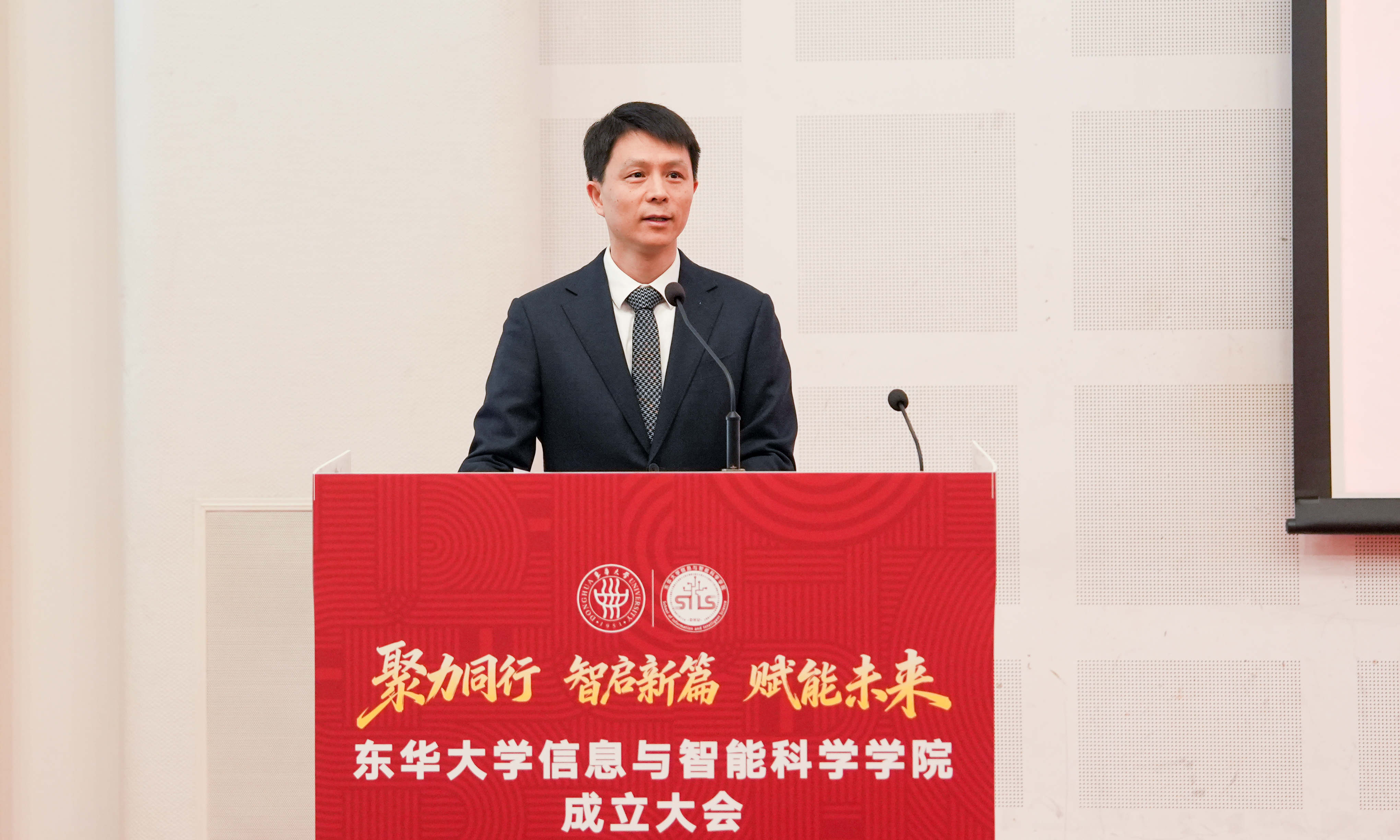 项延训在致辞中祝贺学院成立,对与会领导、嘉宾及长期支持学校信息、计算机学科发展的各界人士表示感谢。他指出,成立信智学院是学校服务国家战略、优化学科布局的重要举措,希望学院在发展中要坚持党建引领,将党的建设贯彻改革发展全过程;要不断巩固优势,创新突破,建设一流学科;要坚持人才强院,打造高水平师资队伍;要创新育人范式,在学科交叉融合中培养拔尖创新人才;要聚焦国家急需,加强“卡脖子”技术和关键领域科研攻关,强化产学研用协同创新,助力产业提质升级,服务国家科技自立自强。