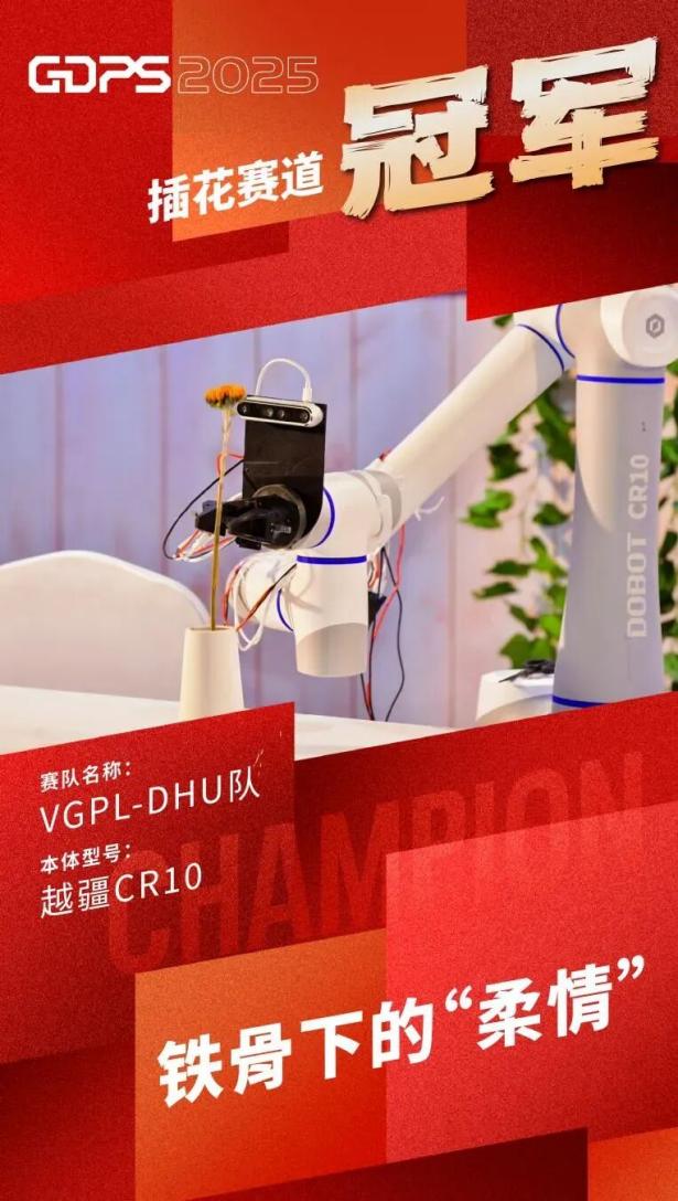 大会设立了工业装配、应急救援、插花等九个比赛赛道,来自全球顶尖实验室、头部企业与创新团队的百余支队伍,在连续三天的赛程中展开了激烈角逐。由我校研究生靳亮、刘浩天、方小康、王丙灏、胡雨斌组成的团队,在教师蔡棽、高永彬和方志军的指导下,参加了插花比赛并最终荣获冠军,团队使用了更具泛化性的视觉-语言多模态模型(VLM)方案,并创新性使用由远及近的精确空间定位策略,圆满完成了绝大多数插花任务。