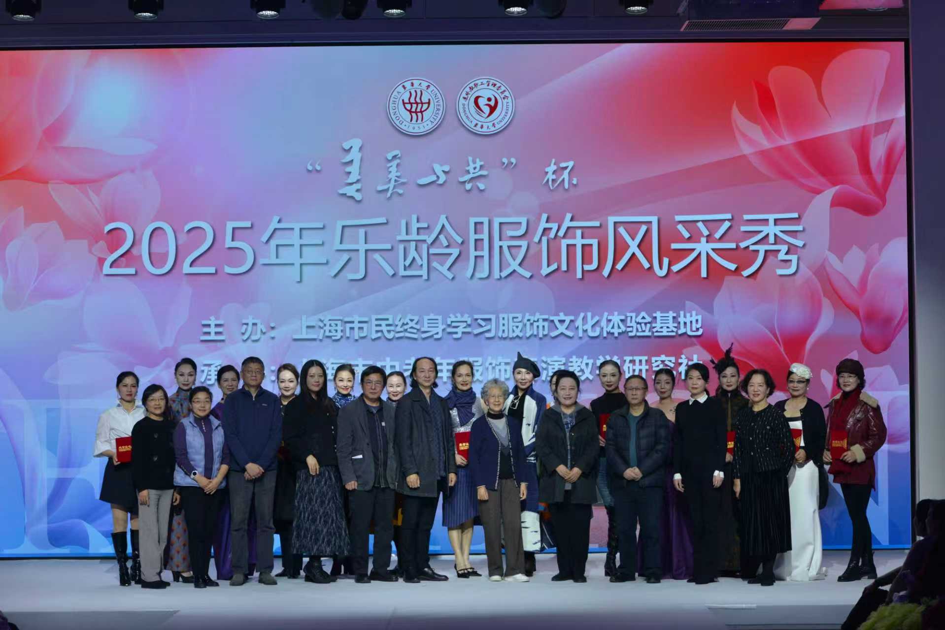 近日,由上海市民终身学习服饰文化体验基地主办、上海市中老年服饰表演教学研究社承办的“美美与共”杯2025年乐龄服饰风采秀在东华大学延安路校区逸夫楼表演厅举行。15支沪上中老年时装队齐聚一堂,以服饰为媒、以文化为魂,在T台上勾勒出冬日申城最具韵味的乐龄时尚风景线。