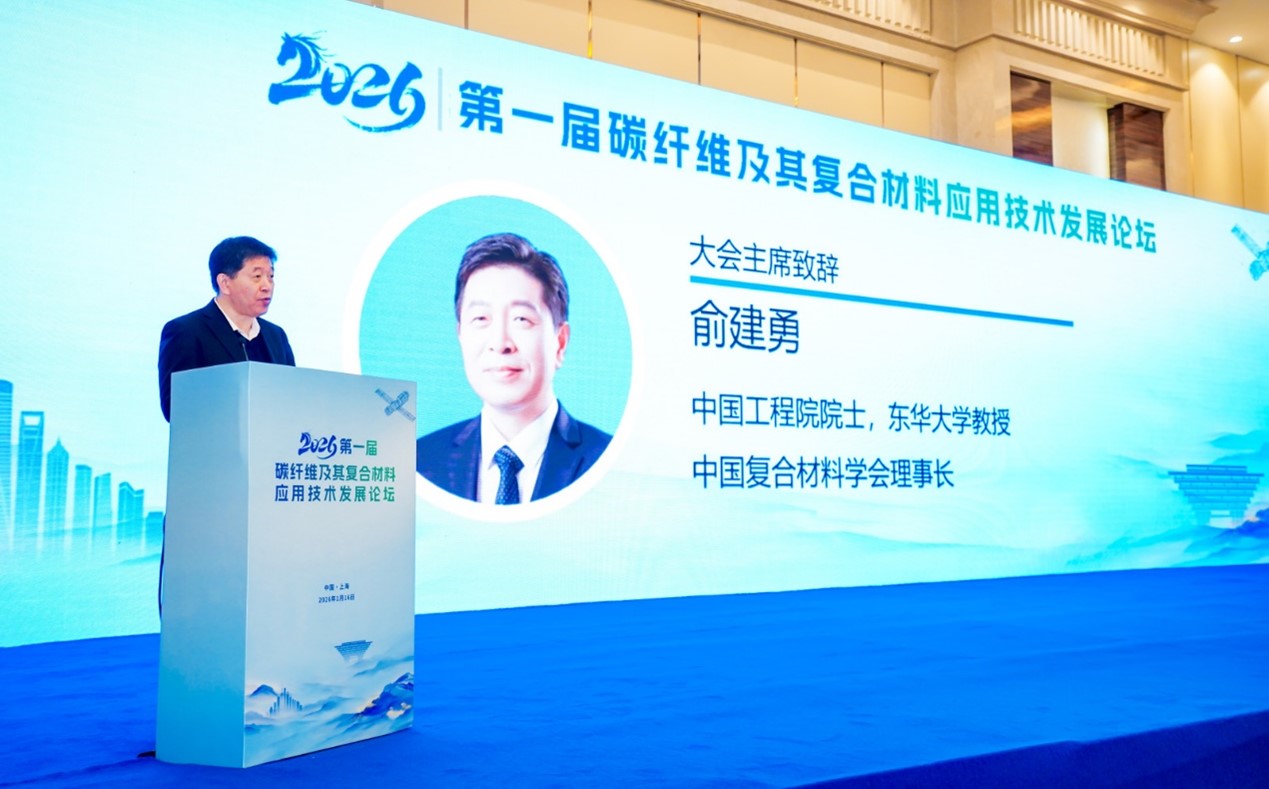 2026年1月15日-17日,由中国复合材料学会指导,我校作为主要单位承办的第一届碳纤维及其复合材料应用技术发展论坛在上海举办。大会主席、中国工程院院士、中国复合材料学会理事长、东华大学教授俞建勇,中国工程院院士、中国商用飞机有限责任公司工程总师陈勇,松江区人民政府副区长王晔,东华大学副校长陈革出席开幕式,开幕式由中国复合材料学会副秘书长、中国航空制造技术研究院副总工程师包建文主持。哈尔滨工业大学、西北工业大学、南京航空航天大学等多所高校、军事科学院相关院所、中科院化学所和宁波材料所等科研院机构,以及航天科技、航天科工、中航工业、中国商飞、中国中车、中国船舶、中国建材等龙头企业及产业链相关单位的380余位专家、学者、技术骨干与企业代表参会。