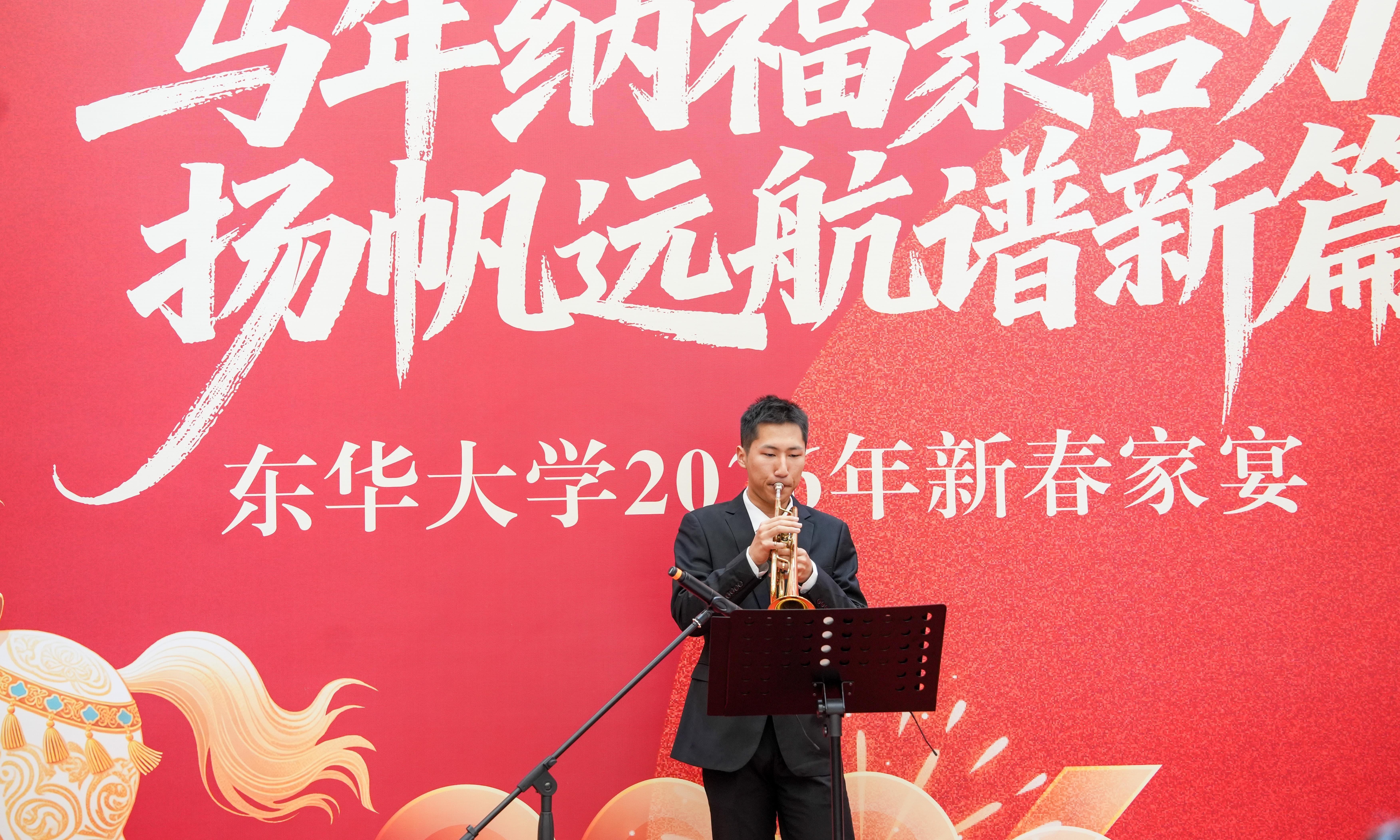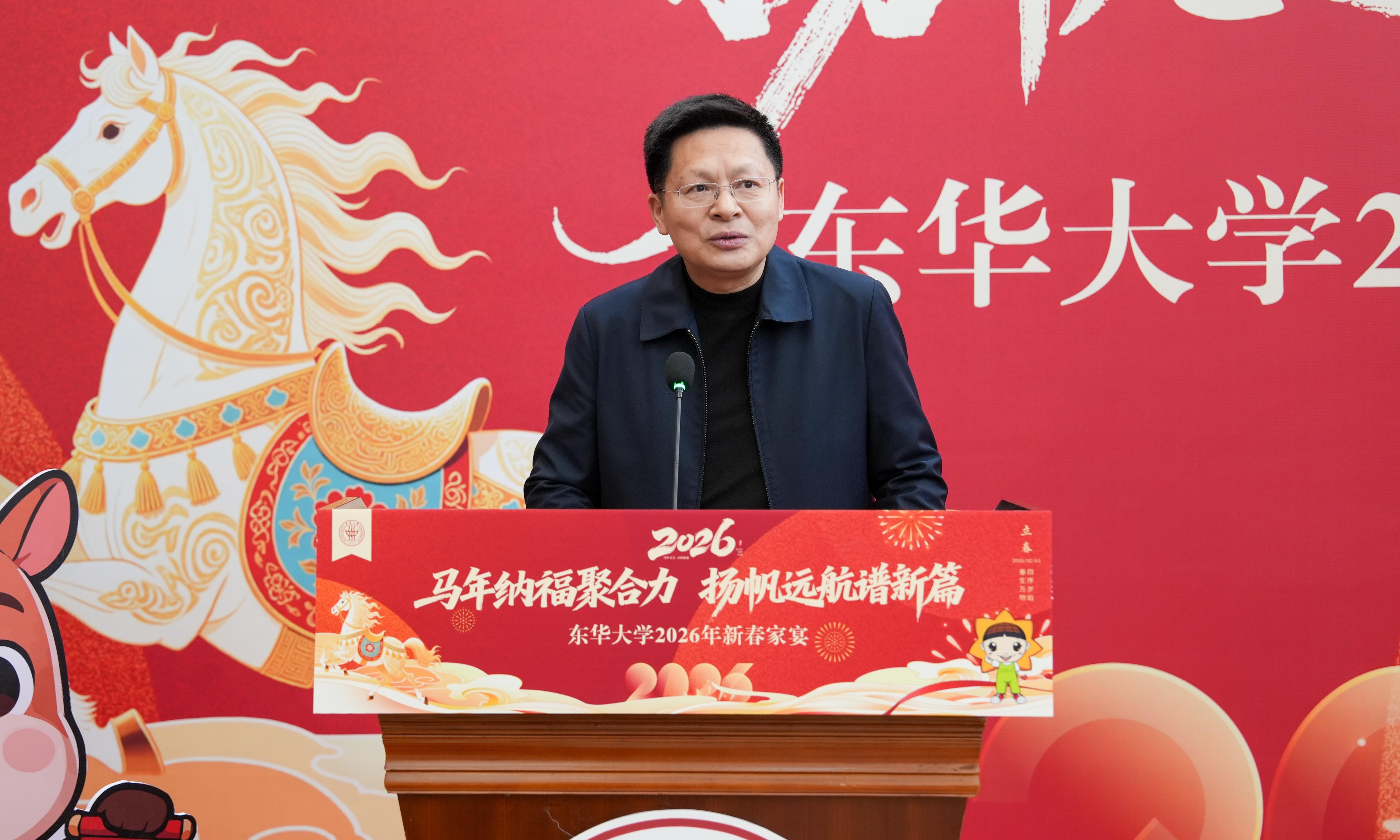 项延训对上海市教卫工作党委、市教委长期以来给予学校的关心指导和大力支持表示感谢。他指出,过去一年学校在学科建设、科技创新和人才培养等领域取得系列突破,各项事业呈现出蓬勃向上的发展态势。他表示,希望全体师生在新的一年里携手同心、奋楫前行,共同谱写“奋进东华”的新篇章,并宣布家宴正式开席。