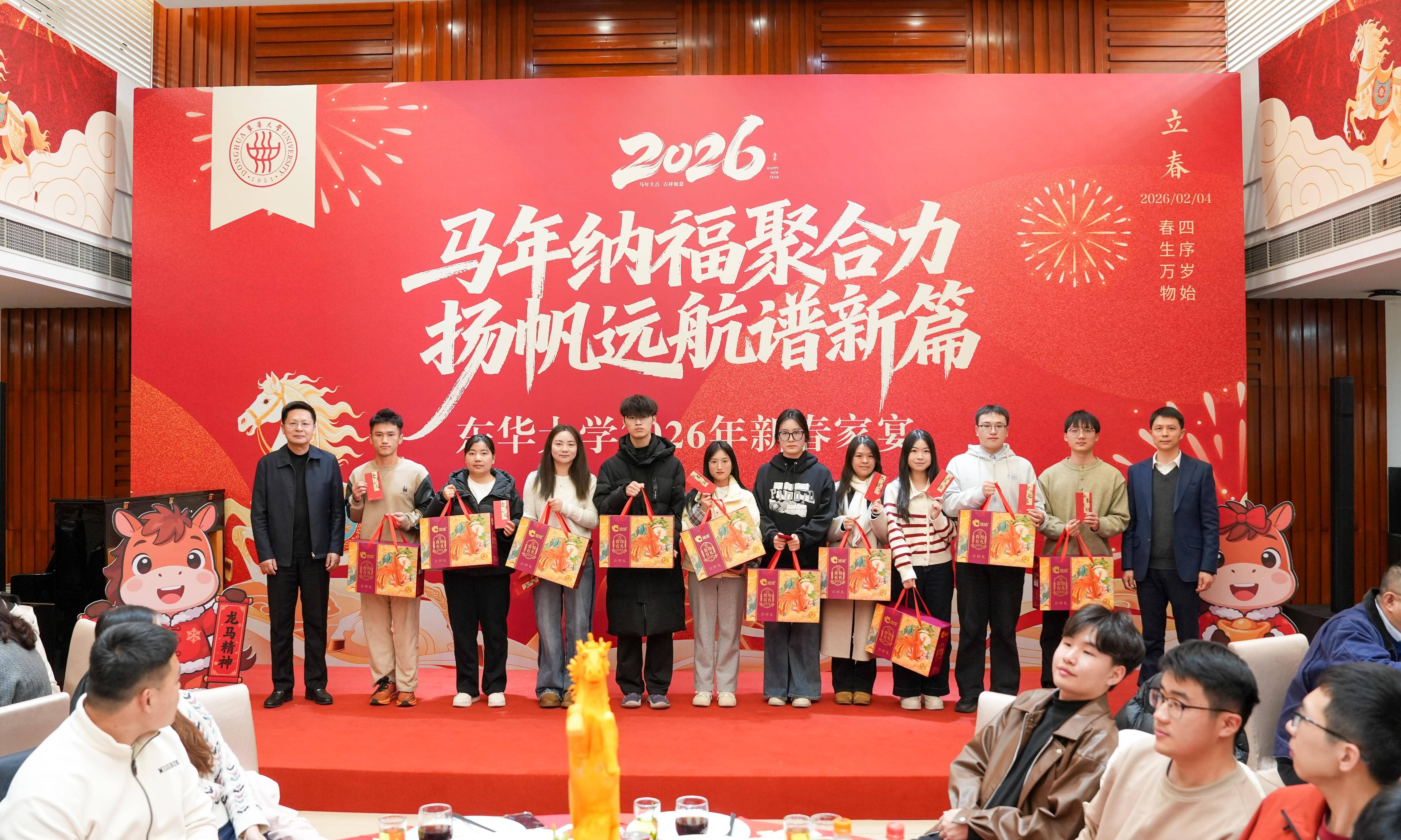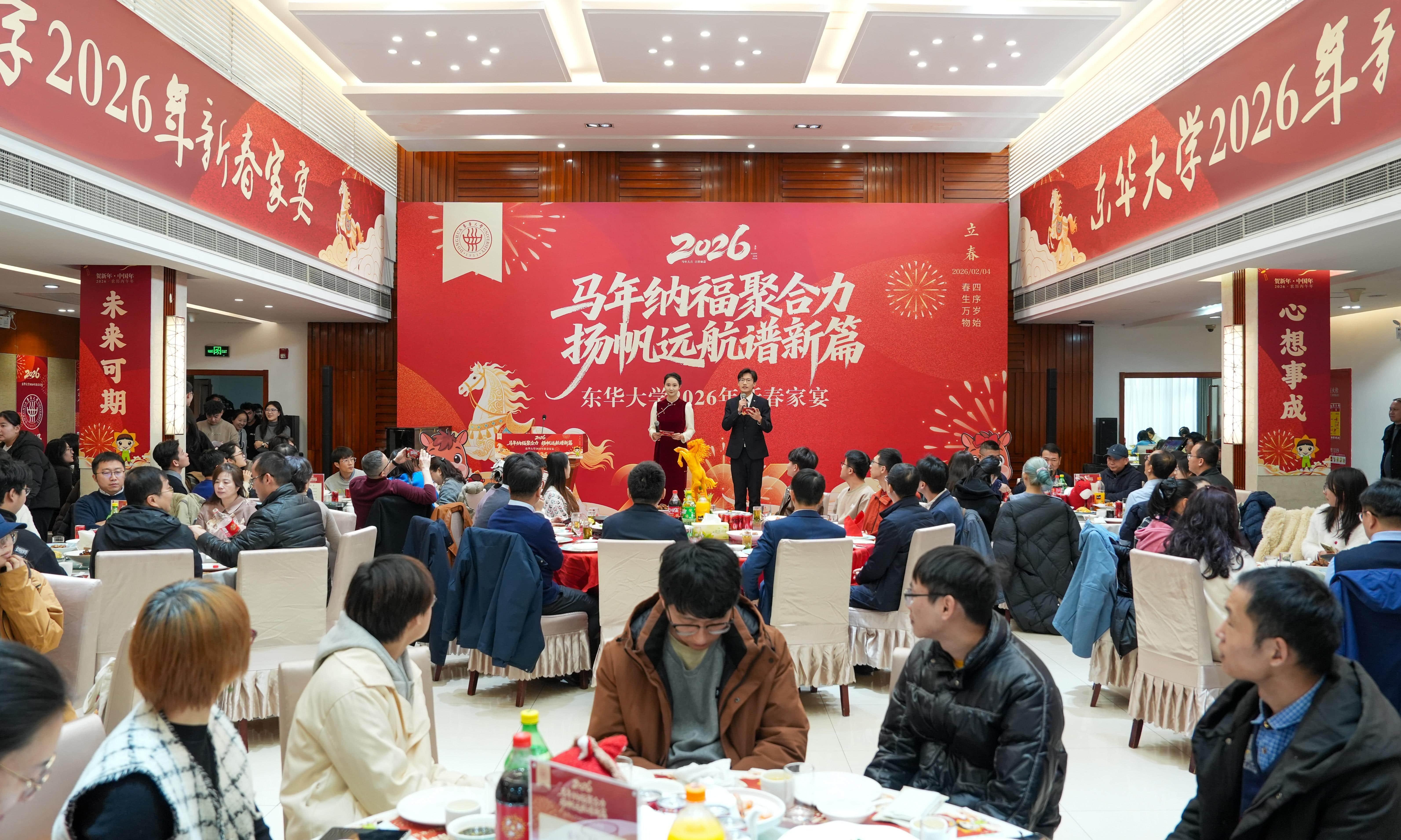 灵蛇辞岁,骏马迎春。2月4日正值立春,我校2026年新春家宴在延安路校区东华食府温暖举行。上海市教育委员会副主任叶霖霖、学生处副处长俞冶论,我校校长项延训,党委副书记李成龙,副校长陈革、阎林平,各机关部处、学院负责人等,与400余名师生齐聚一堂,共享团圆家宴,喜迎丙午马年。