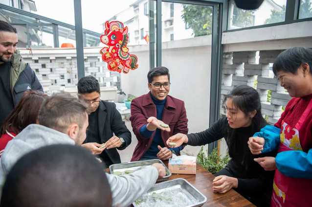2月15日,来自阿塞拜疆、孟加拉、埃塞俄比亚、肯尼亚、巴基斯坦、苏丹、乌干达、越南等11个国家的51名东华国际学生走进金山区漕泾镇水库村,逛乡村集市、体验非遗年俗、走进村民家中、共享团圆年夜饭,在烟火气中感受地道中国年,在亲切互动中增进中外友谊。