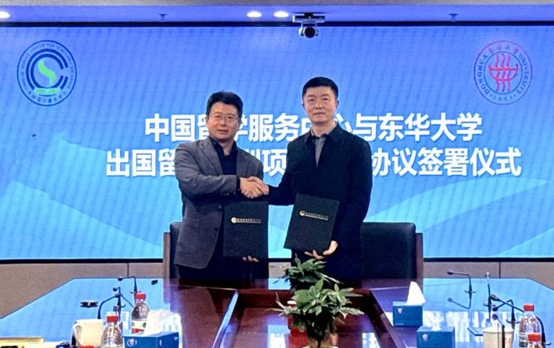 签约仪式上,夏建辉介绍了中心的业务发展情况,并对东华大学积极推进项目落地表示赞赏。他表示,东华大学作为特色鲜明的“双一流”建设高校,在国际教育合作领域展现出高效务实的作风和专业水准。中心将继续支持东华大学在国际教育领域深耕细作,携手打造高质量、高信誉度的出国留学培训品牌。