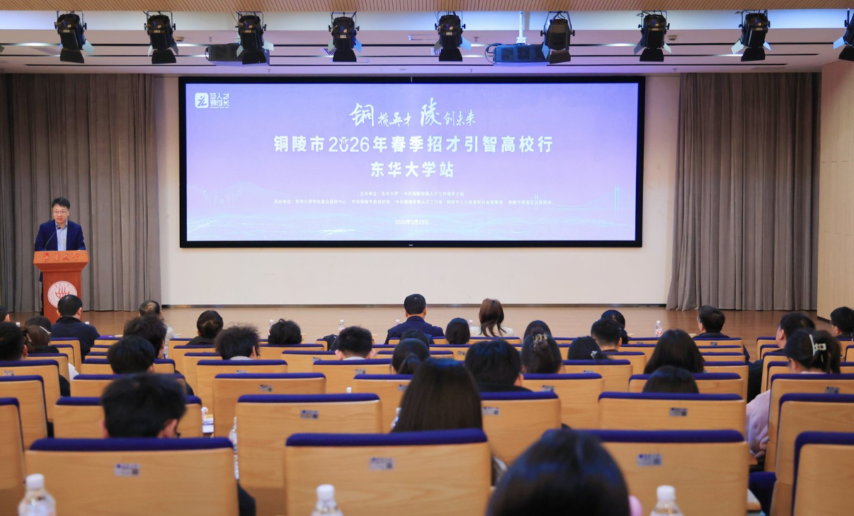 3月19日,铜陵市2026年春季招才引智高校行在校举行。铜陵市委常委、组织部部长郑刚带队来东华大学开展招才引智高校行活动,我校党委副书记李成龙出席活动,铜陵市委人才工作局、市人社局等单位负责同志参加。