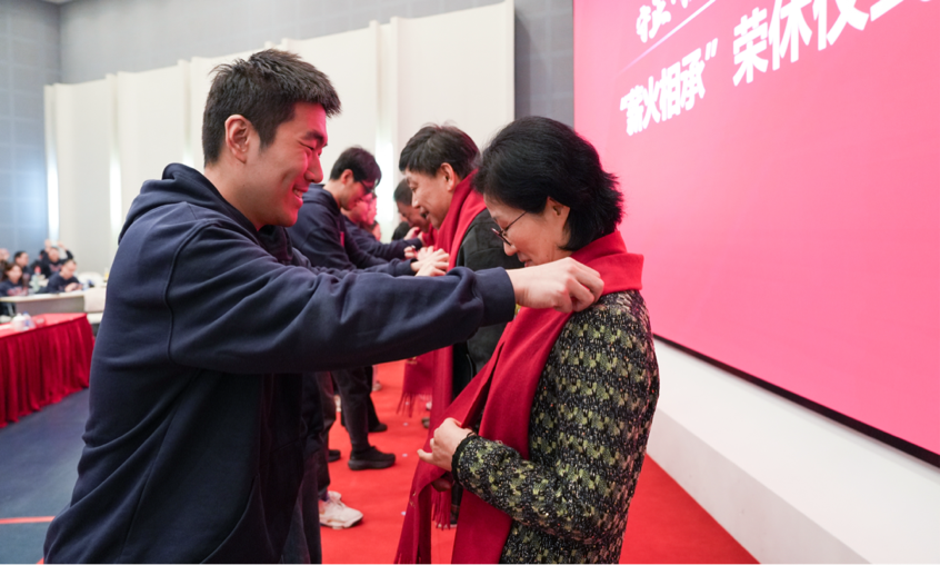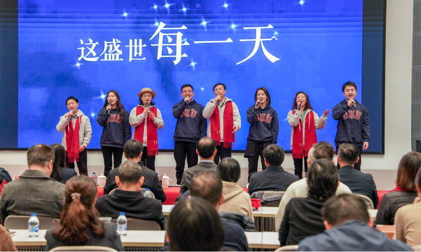 现场举行“薪火相承”荣休仪式,新教师代表为荣休教师代表献戴纪念围巾,荣休教师代表为新教师代表佩戴校徽,两代东华人以一场双向的教育情怀接力,赓续师道精神。新老教师代表联袂献唱《时光回响奋进新程》,用歌声致敬岁月、礼赞传承。