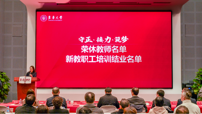 荣休教师代表、纺织学院教授郭建生在发言时回望四十载执教生涯,分享深耕纺织教育,将经纬之道融入育人,以匠心传知识、以责任育人才的点滴。原基建处处长汤跃宁动情讲述从公安干警到教育工作者的初心坚守和暖心故事,诠释平凡岗位育人育德的温度与担当。材料科学与工程学院教授张骐昊代表新教职工表达了以实干践行教育家精神、勇担育人使命的坚定决心。