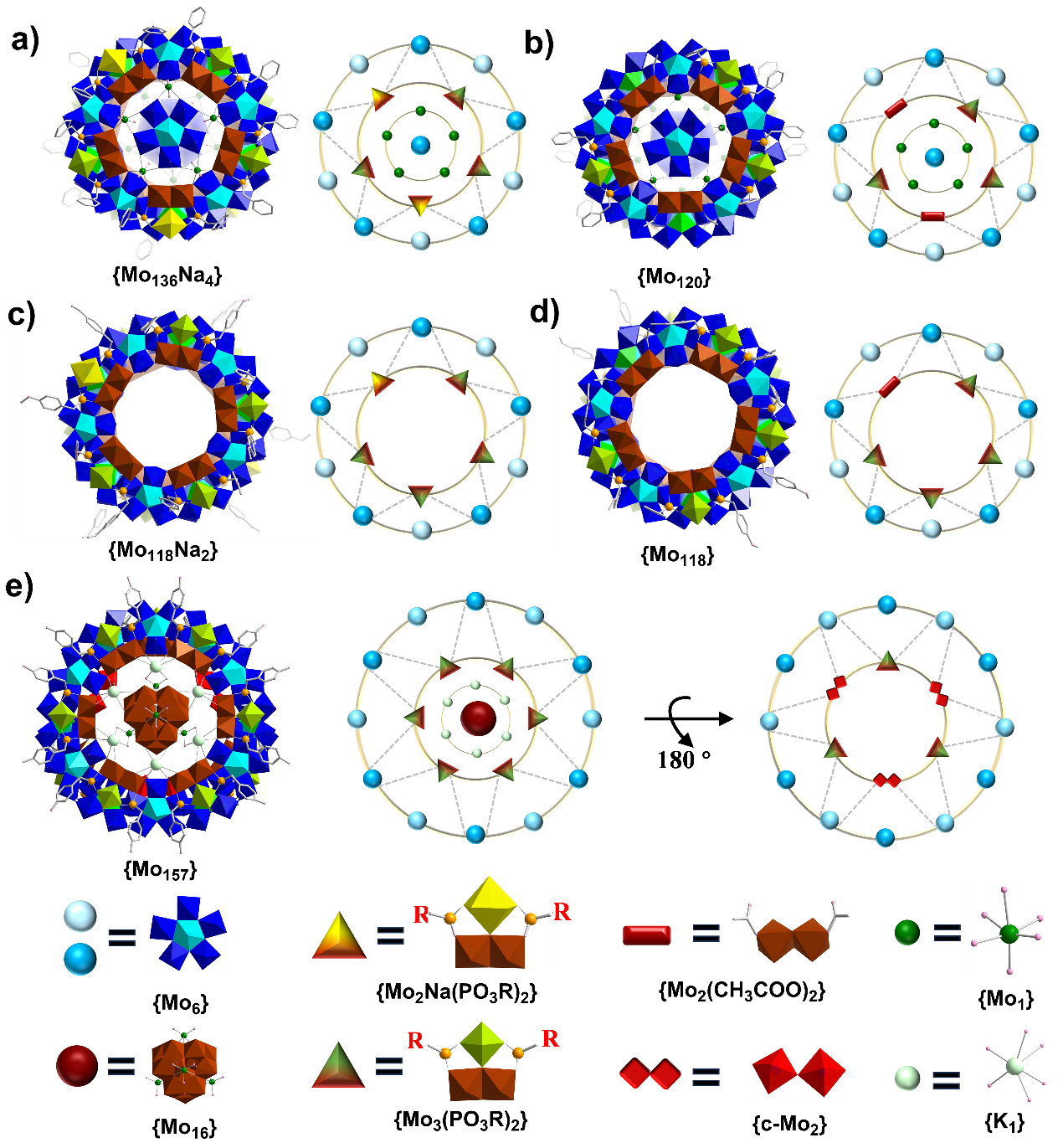 图1. 有机膦酸配体导向的轮状钼蓝团簇的结构演变。