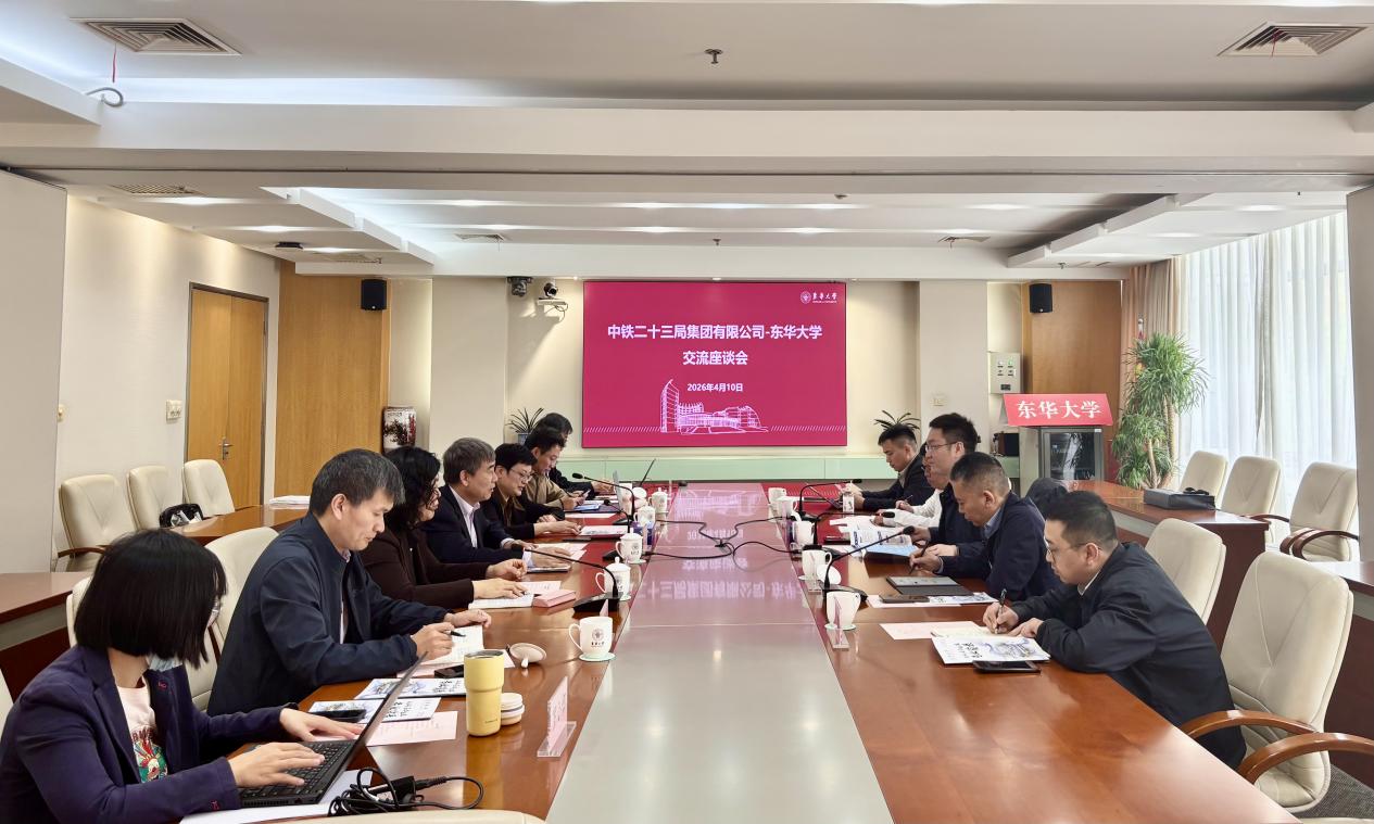张清华代表学校对王鹏一行表示欢迎,并介绍了学校科研发展情况。他表示,东华大学发挥纺织、材料等学科优势,聚焦国家战略需求,深耕科研成果转化与协同研发。期待以此次调研为契机,与中铁二十三局集团建立常态化合作机制,整合双方创新资源、精准对接产业发展需求,推动校企双方在技术共研、平台共建、人才共育上深度融合,携手赋能国家基础设施建设与产业高质量升级。