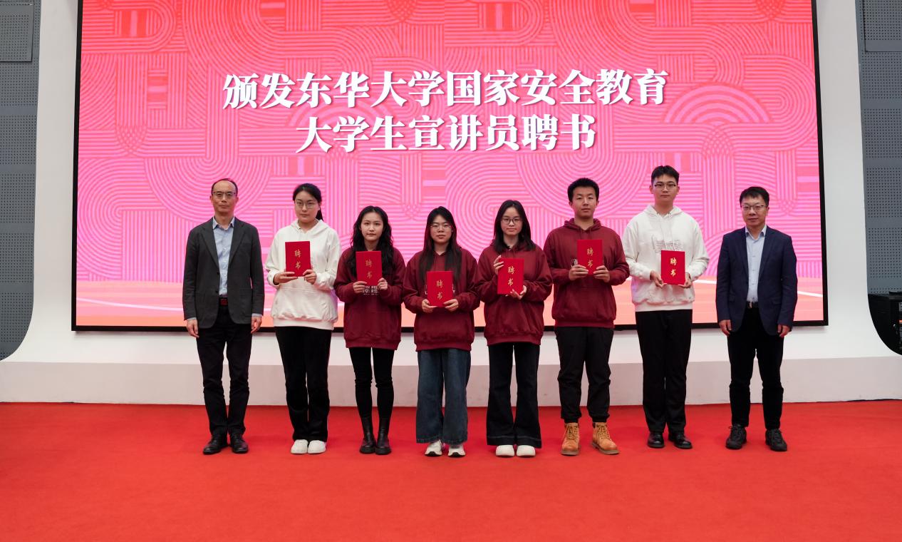 为持续深化校园国家安全教育,学校组建了国家安全教育大学生宣讲团并为宣讲员颁发聘书,勉励大家以青春之声传播安全理念,以实际行动践行责任担当,进一步壮大校园国家安全教育力量,推动宣传教育常态化、长效化。