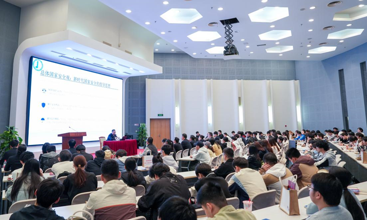 为迎接第十一个全民国家安全教育日,深入贯彻总体国家安全观,推进校园国家安全教育走深走实,4月13日下午,学校在松江校区举行“同护国家安全 共筑爱国长城”国家安全教育日专题讲座。本次讲座特邀上海市人民检察院第一分院检委会委员、二级高级检察官、第二检察部主任刘金泽担任主讲嘉宾,百余名师生代表齐聚现场,共上一堂生动的国家安全教育课。