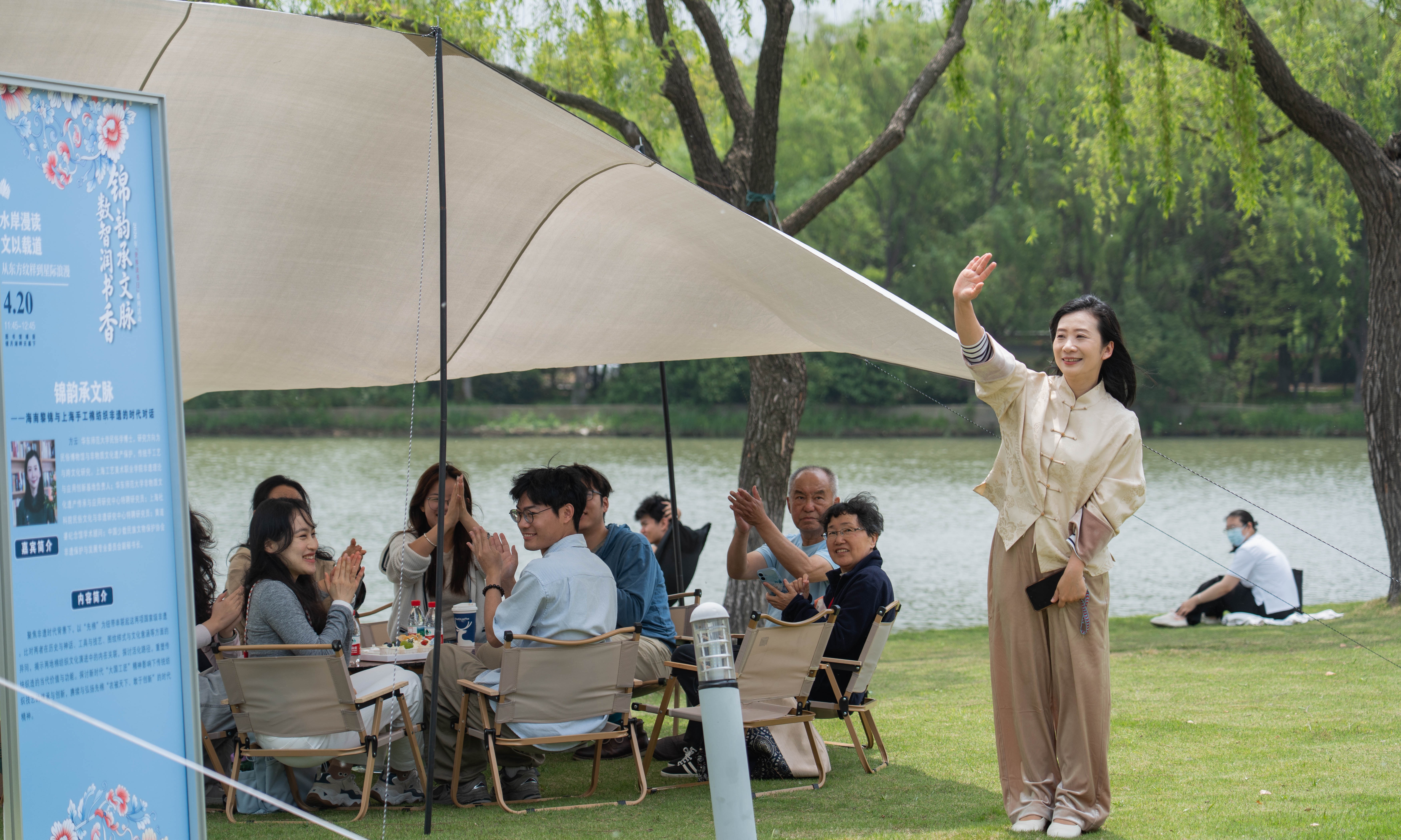 4月21日,“水岸漫读·文以载道”湖畔悦读分享会在镜月湖畔举行。活动邀请专家学者、阅读达人等分享真知灼见,以“锦韵承文脉、纹样传千年、文思幻新境、华裳织雅韵”四大篇章串联纺织文化的多元维度。通过校地联动,将阅读推广与非遗传承、文化育人深度融合,师生在湖畔天幕间共享兼具学术深度与文化温度的沉浸式体验。