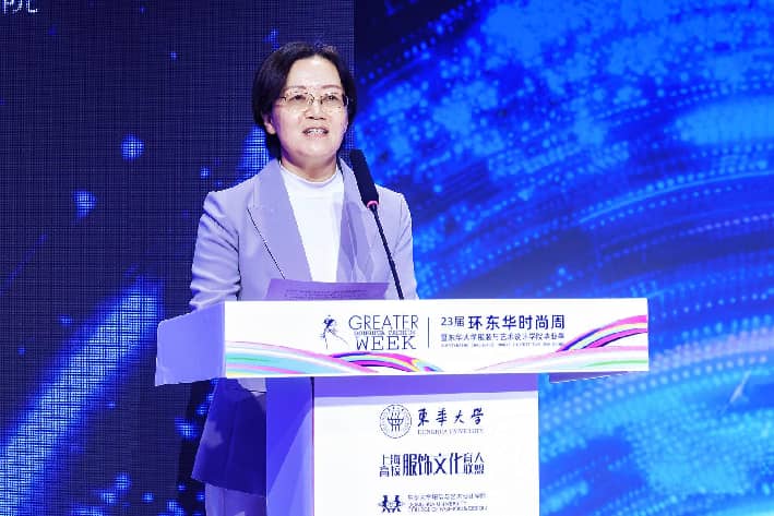 刘淑慧在致辞中表示,东华大学始终坚持“四个面向”,聚焦国家重大战略与社会经济发展需求,大力推进“纺织+时尚”“材料+能源”“智能+健康”三大学科集群建设,并将时尚创意与设计创新作为学校核心优势纳入“十五五”发展规划重点布局。学校将积极支持服装与艺术设计学院建设世界一流时尚特色设计学院,推动学科向系统化、生态化、跨域融合转型,打造具有全球辨识度的可持续时尚与设计创新策源地。她指出,环东华时尚周已成功举办二十三届,是推动设计、科技、文化与可持续发展深度融合,助力上海“设计之都、时尚之都、品牌之都”建设的重要平台。学校将持续深化政产学研协同创新,促进教育链、人才链、产业链和创新链有机衔接,持续激发时尚创意活力,为上海加快建成具有世界影响力的社会主义现代化国际大都市贡献力量。